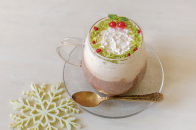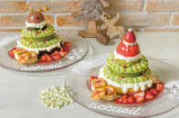 \X’masモチーフを美味しいお菓子に/丸グラスで仕上げたショートケーキはツリーを飾るオーナメントをイメージ、グラスゼリーやオーナメントムースでイルミネーションのキラキラ感を演出★X’masの定番ブッシュドノエル、リースドーナツはオールスパイスを使用したシュトーレン風☆ランチメニューで人気のお食事パンケーキもX’mas特別ver.で初登場★X’masのプレゼント開けるようなワクワク感を楽しんで! 12.1〜12.25(アクイーユ恵比寿)