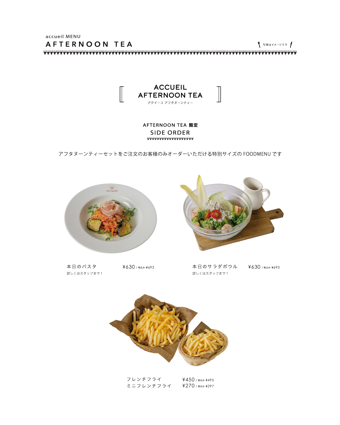 アフタヌーンティーをご注文のお客様のみオーダーいただける特別サイズのサイドMENUもご用意!こちらをCheck★