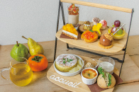 \森の収穫祭がテーマ!秋の味覚と紅茶祭り/めずらしい柿のスイーツ「柿のアールグレイレアチーズケーキ」、ころんとしたフォルムがかわいい「どんぐりムース」と「いちょうのクッキー」「メレンゲシャンピニオン」は秋の森をイメージ!ミニチュアサイズの「栗のオレンジフルーツガーデンティーミニケーキ」はアムシュティーの紅茶を使用☆ 栗や柿、りんごなど秋の味覚と紅茶が主役のアフタヌーンティー!季節の紅茶《スペシャルティー》も秋仕様で相性ばっちり★ 11.1〜11.30(アクイーユ恵比寿)