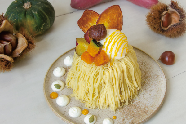 秋の味覚の代表[さつまいも・栗・かぼちゃ]を様々なカタチ・食感で表現